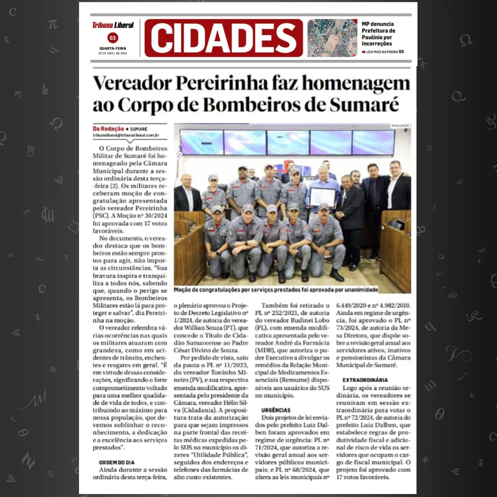 atuações do ver.jose adilson pereirinha destacadas na imprensa local